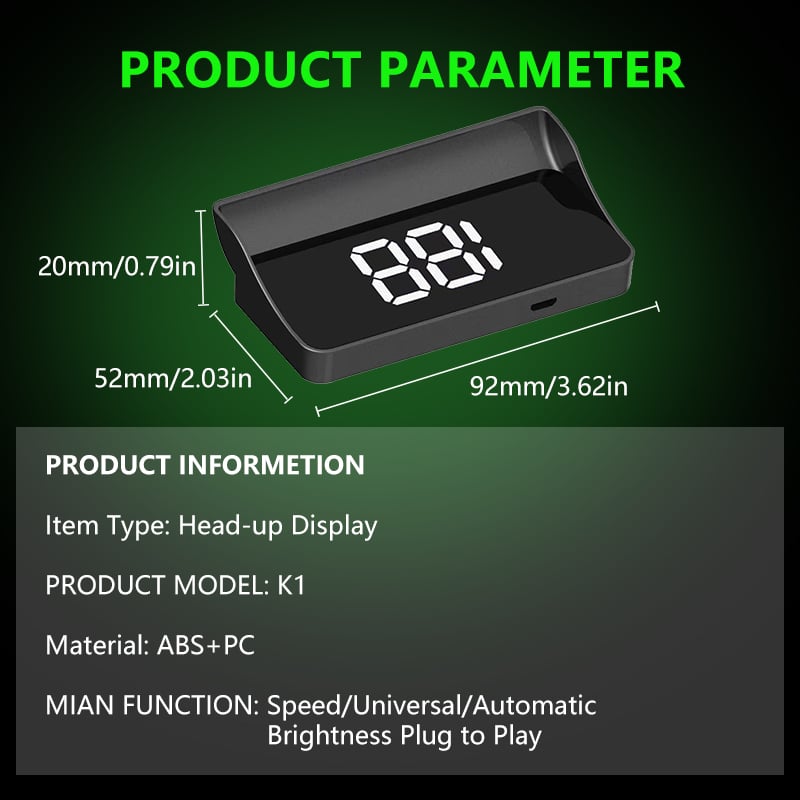 - Type: GPS Head-Up Display Speedometer